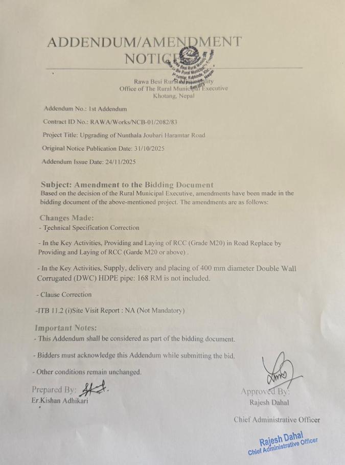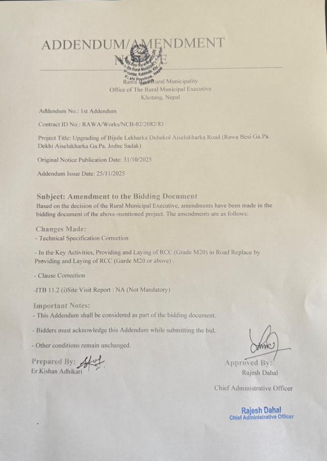 सार्वजनिक खरिद/बोलपत्र सूचना