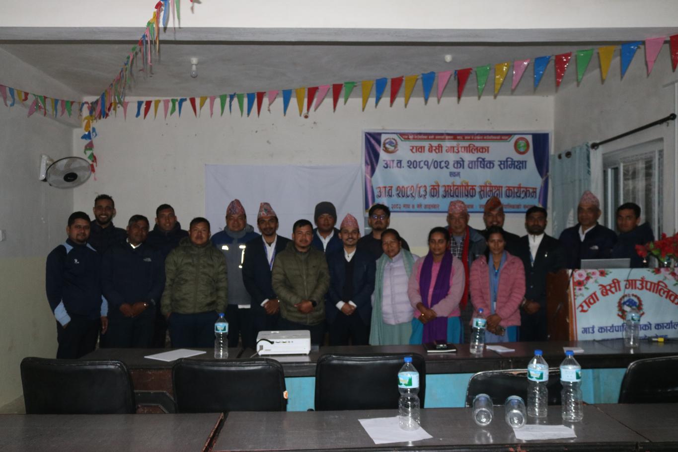 रावा बेसी गाउँपालिकाको आर्थिक वर्ष २०८१/०८२ को वार्षिक समीक्षा तथा आर्थिक वर्ष २०८२/०८३ को अर्धवार्षिक समीक्षा कार्यक्रम गाउँपालिका अध्यक्ष श्री फटिक कुमार श्रेष्ठ ज्यूको अध्यक्षतामा सम्पन्न भएको छ। उक्त कार्यक्रममा उपाध्यक्ष, वडा अध्यक्षज्यूहरू, गाउँ कार्यपालिका सदस्यज्यूहरू तथा कर्मचारीहरूको उल्लेखनीय उपस्थिति रहेको थियो।