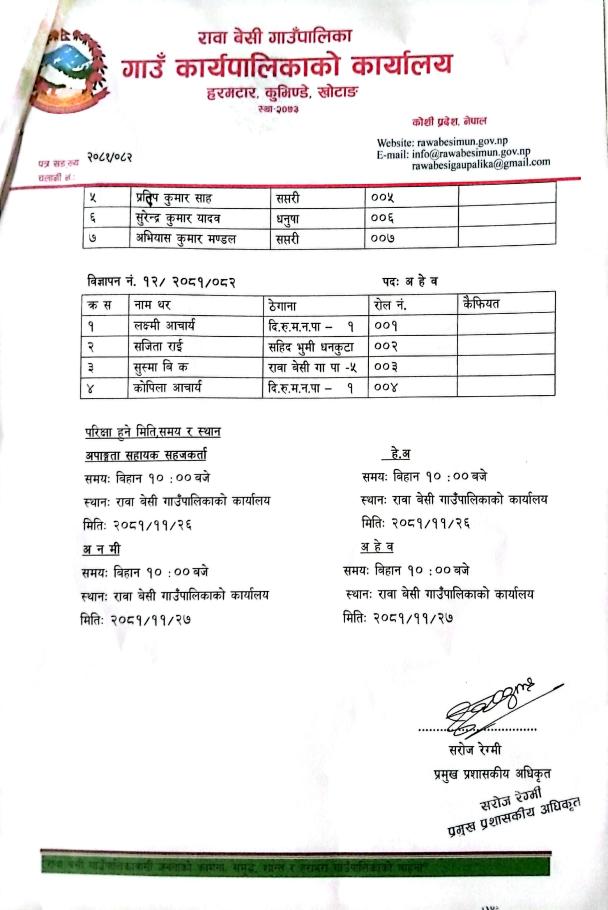 रोल नम्बर कायम गरी परीक्षा हुने मिति, समय र स्थान तोकियाको सम्बन्धी सूचना !!